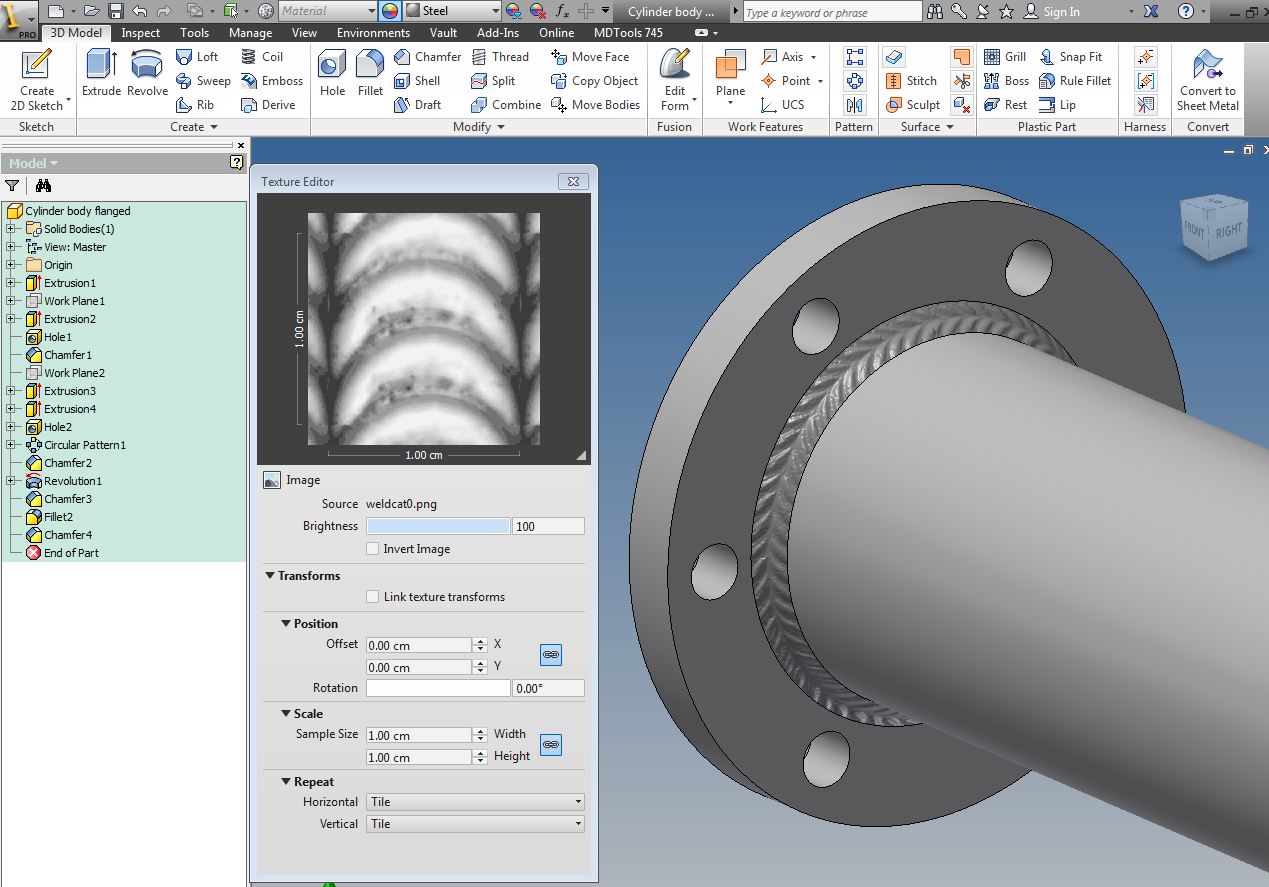 Inventor weld bead on sheet metal.